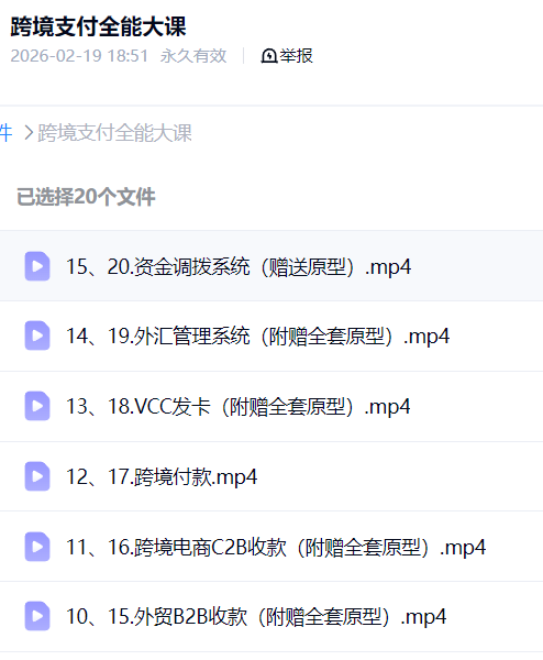 本课程是一套系统全面的跨境支付领域产品实战课程。课程从零基础入门,系统讲解跨境支付的基础概念、全球本地支付方式、信息流与资金流等核心理论,并通过国内外支付对比、主流机构盘点构建全局视野。核心实战部分深入拆解外卡收单、境外聚合收单、B2B/C2B收款、跨境付款、VCC发卡、外汇与资金调拨等关键系统的产品设计,并附赠11套可即用的高保真产品原型,结合真实案例,实现从理论认知到产品落地的完整能力构建。